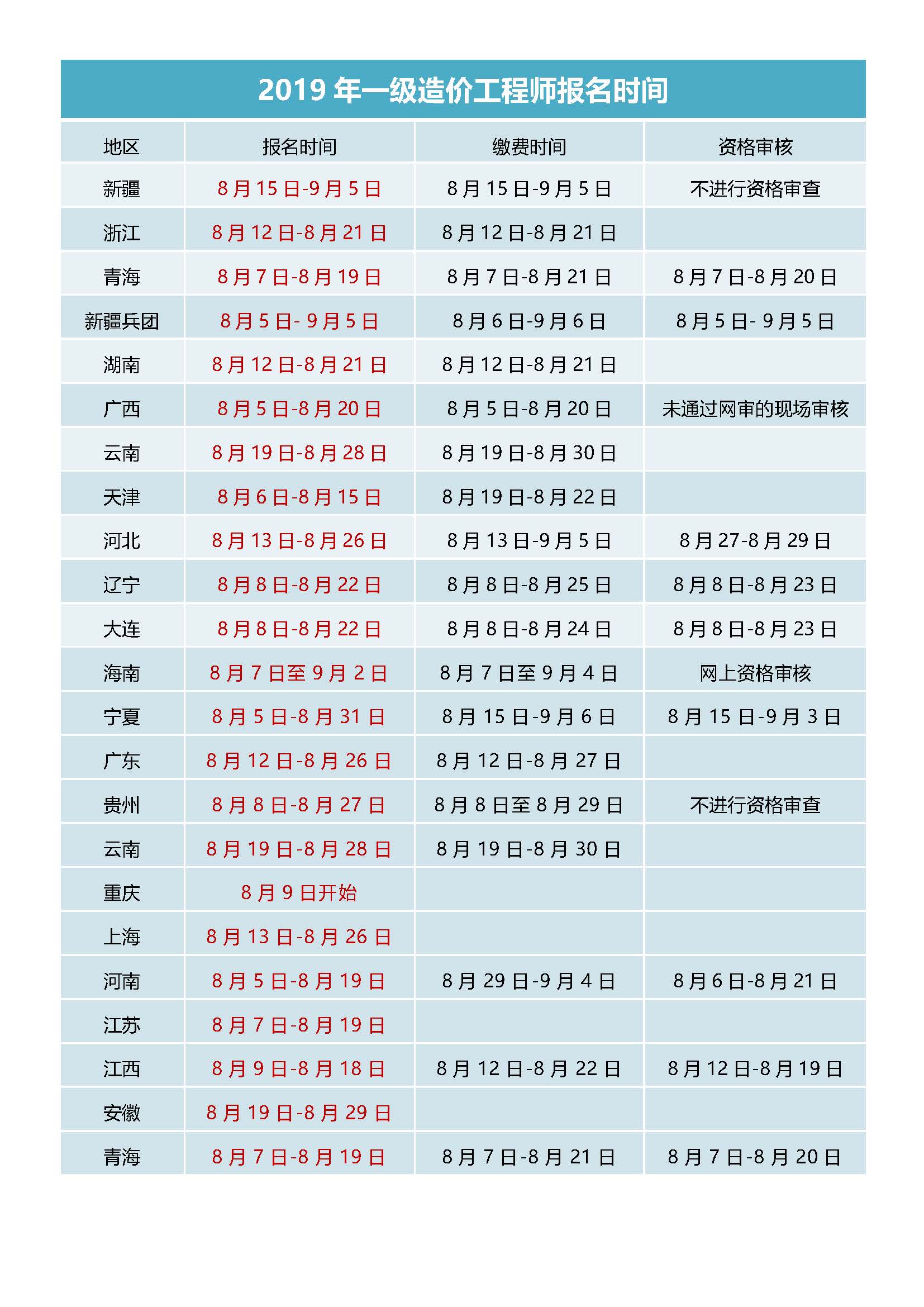 报名盘点 | 已有23个地区发布2019一级造价报名文件!