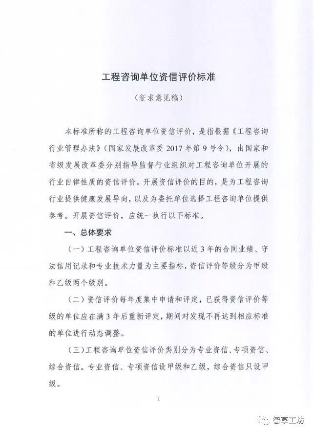 工程咨询单位资信评价标准(征求意见稿)